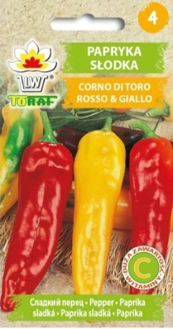 Paprika Corno di Toro Rosso a Giallo je výjimečná směs dvou raných odrůd druhu Capsicum annuum, která spojuje červenou a žlutou plnost chuti v jednom balení. Typickým znakem jsou podlouhlé, kuželovité plody připomínající „býčí roh“, dorůstající délky 18–20 cm.
