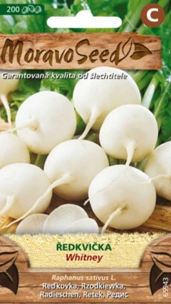 Ředkvička kulatá bílá Whitney je velmi raná odrůda určená k rychlení, jarnímu a podzimnímu polnímu pěstování. Díky svým kulatým, středně velkým a čistě bílým bulvičkám, které výborně odolávají praskání, patří mezi nejoblíbenější bílé ředkvičky do zahrad i skleníků. Vegetační doba pouhých 30–34 dnů umožňuje rychlou a spolehlivou sklizeň.